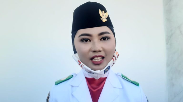 Siswi SMAN 1 Bontang, Azhari Putri Dzulhijaah saat ditemui Insitekaltim.com usai Upacara HUT Kemerdekaan RI ke-76 di Lapangan Lang-lang, Jalan Aip II KS Tubun, Selasa (17/8/2021)