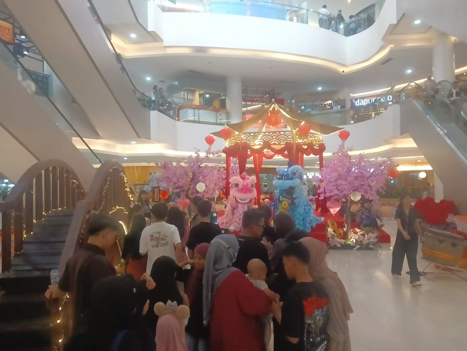 Dekorasinya tak main-main. Bunga Mei Hwa menghiasi sudut-sudut atrium, sementara arch bridge (jembatan kayu khas China) menjadi latar favorit untuk berfoto. Nuansanya hangat dan instagramable, membuat pengunjung betah berlama-lama.