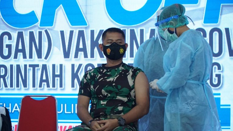 Insitekaltim, Bontang – Letkol Arh Choirul Huda, Komandan Kodim (Dandim) 0908/Btg menjadi orang pertama yang disuntik vaksin Covid-19 di Kota Bontang.