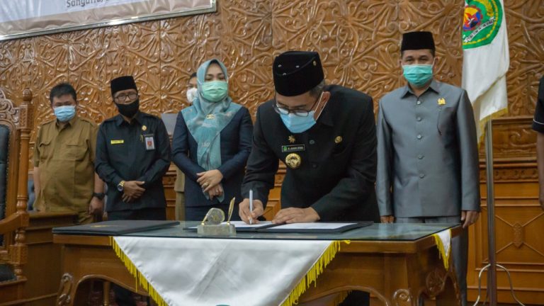 Usai pembacaan nota kesepakatan yang dibacakan Sekwan, DPRD Kutim dan Pemkab Kutim sepakati dan tetapkan dengan penandatanganan Propemperda tahun anggaran 2021.