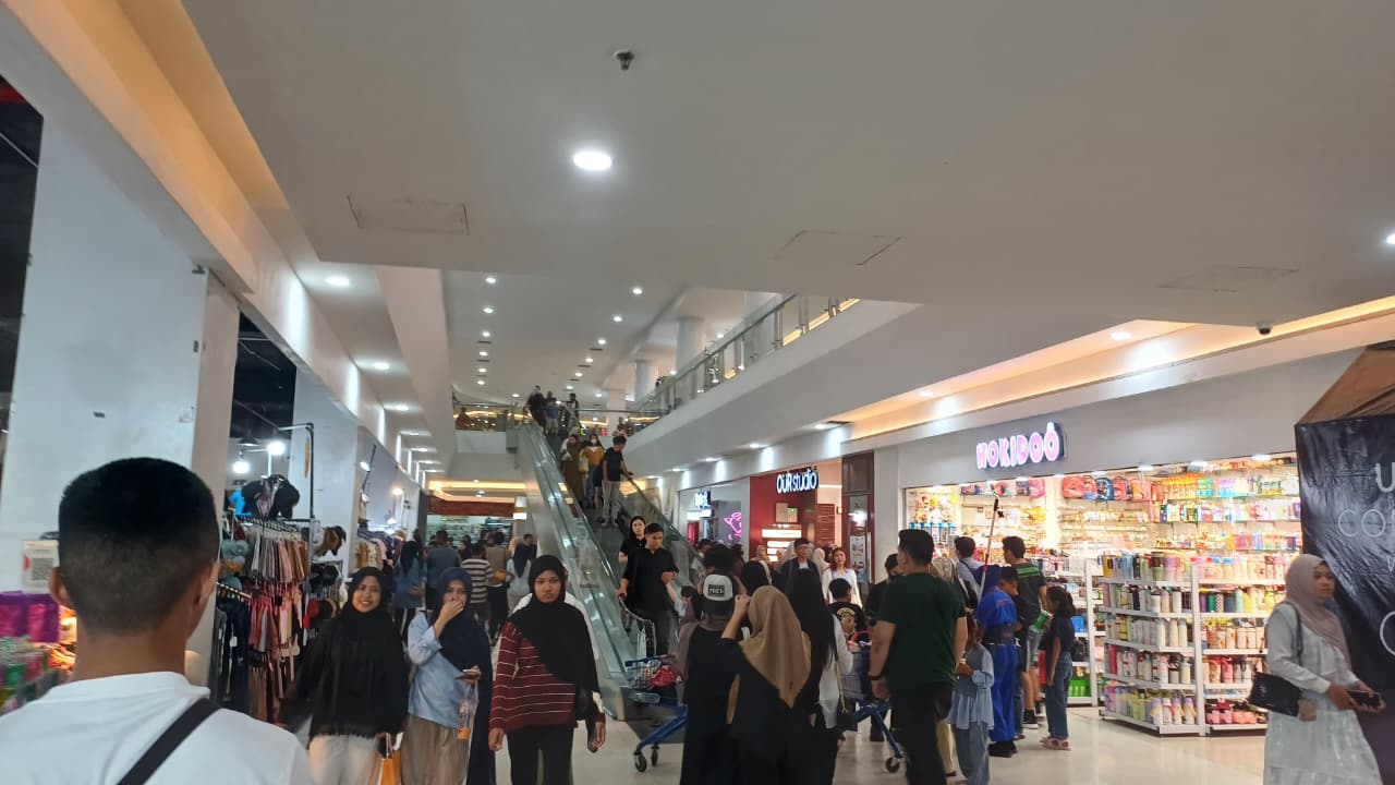 Sejumlah tenant seperti toko pakaian, parfum, serta gerai makanan dan minuman menjadi titik keramaian utama. Bahkan, antrean panjang terlihat di beberapa toko yang menawarkan promo khusus Lebaran.