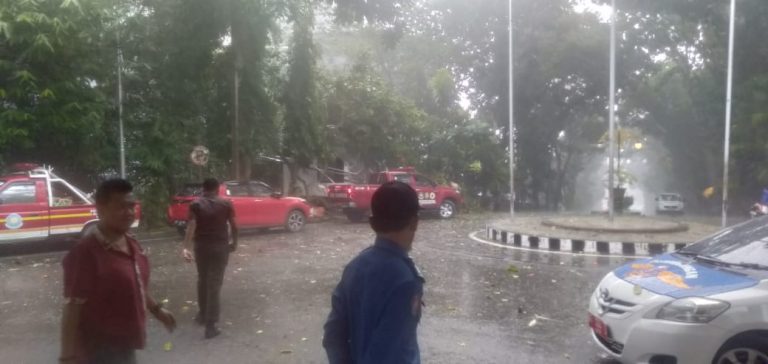 Begitu juga atap pos penjagaan depan pintu masuk Balai Kota Samarinda juga ikut roboh akibat angin kencang dan ditimpa pohon.