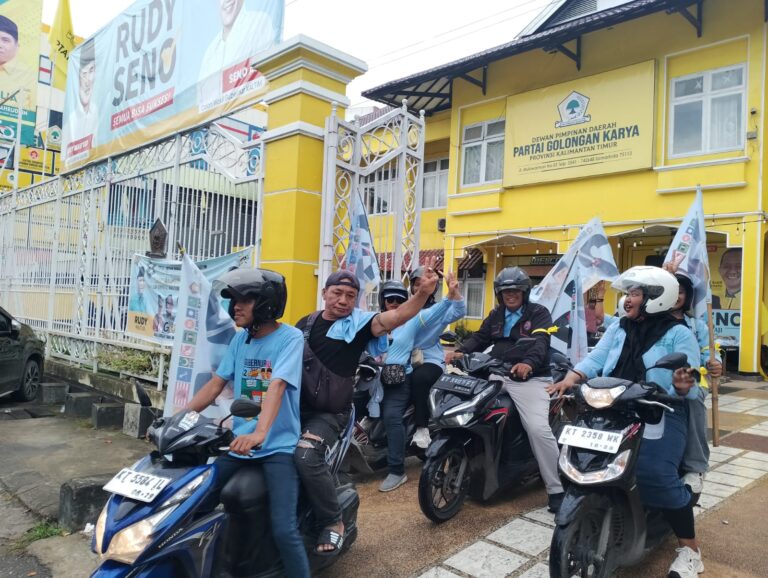 Insitekaltim, Samarinda – Relawan dan pendukung pasangan calon (paslon) Gubernur Provinsi Kalimantan Timur (Kaltim) nomor urut dua Rudy Mas’ud dan calon Wakil Gubernur Provinsi Kaltim Seno Aji berkumpul di Kantor Dewan Perwakilan Daerah (DPD) Partai Golkar, Sabtu (23/11/2024).