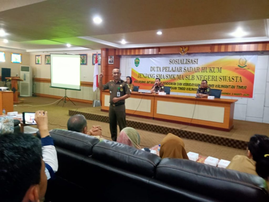 Insitekaltim, Samarinda – Kejaksaan Tinggi (Kejati) dan Dinas Pendidikan (Disdik) Kaltim mengelar Pemilihan Duta Sadar Hukum. Kegiatan ini berupa pembekalan kepada seluruh pelajar di Kota Samarinda, untuk menumbuhkan budaya sadar hukum kepada kaum milineal. Peserta sosialisasi berasal dari jenjang SMA, SMK, MA dan SLB se-Samarinda.