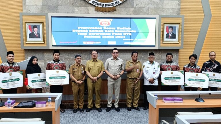 Insitekaltim, Samarinda – Suasana haru dan kebanggaan memenuhi Ruang Mangkupelas, Balai Kota Samarinda, Selasa (26/11/2024). Para anggota Kafilah Kaltim asal Kota Samarinda yang berjaya di Musabaqah Tilawatil Qur’an (MTQ) Nasional XXX menerima bonus istimewa dari Wali Kota Samarinda Andi Harun.