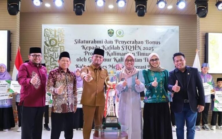 Insitekaltim, Jakarta – Suasana haru dan bangga menyelimuti Anjungan Kalimantan Timur di Taman Mini Indonesia Indah (TMII), Jakarta, Senin, 20 Oktober 2035. Gubernur Kalimantan Timur, H Rudy Mas’ud (Harum), menyerahkan bonus dan hadiah umrah kepada para kafilah Kaltim yang sukses mengukir prestasi sebagai Juara Umum Seleksi Tilawatil Qur’an dan Hadis (STQH) Nasional ke-28 di Kendari, Sulawesi Tenggara.
