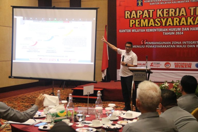 Insitekaltim,Samarinda – Kantor Wilayah Kementerian Hukum dan HAM Provinsi Kalimantan Timur (Kemenkumham Kaltim) menyelenggarakan Rapat Kerja Teknis Pemasyarakatan dengan tema “Pembangunan Zona Integritas Menuju Pemasyarakatan Maju dan Berdampak”. Acara yang diadakan di Ballroom Hotel Aston Kota Samarinda itu dihadiri oleh seluruh jajaran Pemasyarakatan Kanwil Kemenkumham Kaltim.