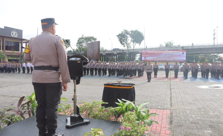 Acara ini dihadiri Wakapolresta, para pejabat utama, kapolsek, serta anggota Polri dan ASN Polresta Samarinda.