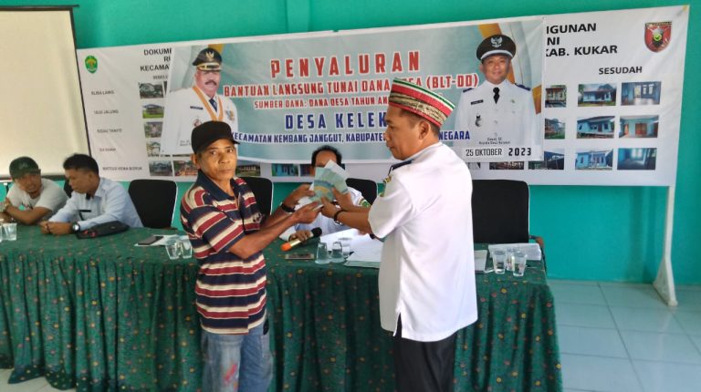 Insitekaltim,Kukar – Kepala Desa Kelekat Cawal menyerahkan Bantuan Langsung Tunai (BLT) Dana Desa (DD) kepada penduduknya pada Rabu (25/10/2023) di Gedung BPU Desa Kelekat.