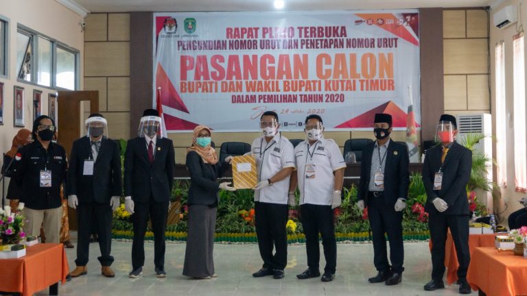 Penyerahan Surat Keputusan Penetapan Nomor Urut 1 kepada Pasangan Calon Mahyunadi-Kinsu, di Kantor KPU kawasan Bukit Pelangi, Sangatta Kutai Timur, Kamis, (24/9/2020)