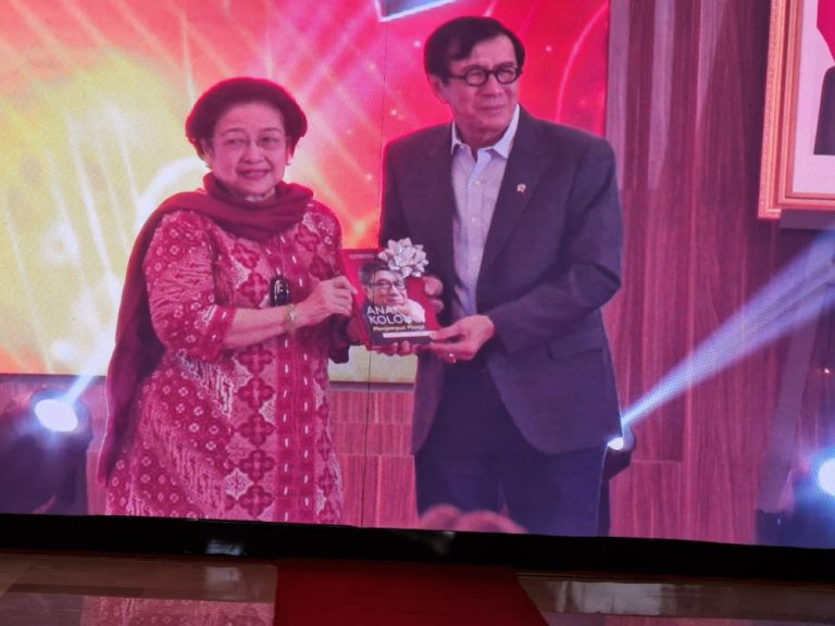 Presiden Republik Indonesia kelima sekaligus Ketua Umum Partai Demokrasi Indonesia Perjuangan (PDIP), DR. (H.C.) Megawati Soekarnoputri yang hadir dalam kesempatan ini turut berbahagia atas launching buku biografi Yasonna H. Laoly.