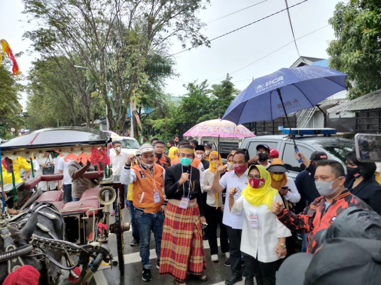 Insitekaltim, Bontang – Ada hal menarik terjadi, Jumat (4/9/2020) pagi. Pasangan calon (Paslon) Neni Moerniaeni dan Joni Muslim mendaftar ke Komisi Pemilihan Umum (KPU) Bontang di Jalan Awang Long dengan kereta kuda atau biasa disebut dengan andong.