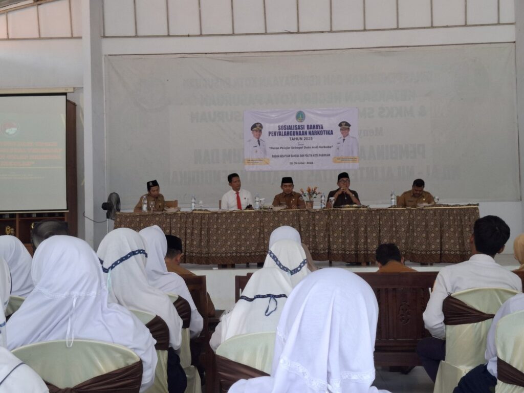 Insitekaltim, Pasuruan – Pemerintah Kota (Pemkot) Pasuruan melalui Badan Kesatuan Bangsa dan Politik (Bakesbangpol) terus menguatkan langkah pencegahan penyalahgunaan narkoba di kalangan pelajar. Salah satunya melalui kegiatan sosialisasi bertema “Peran Pelajar sebagai Duta Anti Narkoba” yang digelar di SMPN 8 Kota Pasuruan, Senin, 20 Oktober 2025.