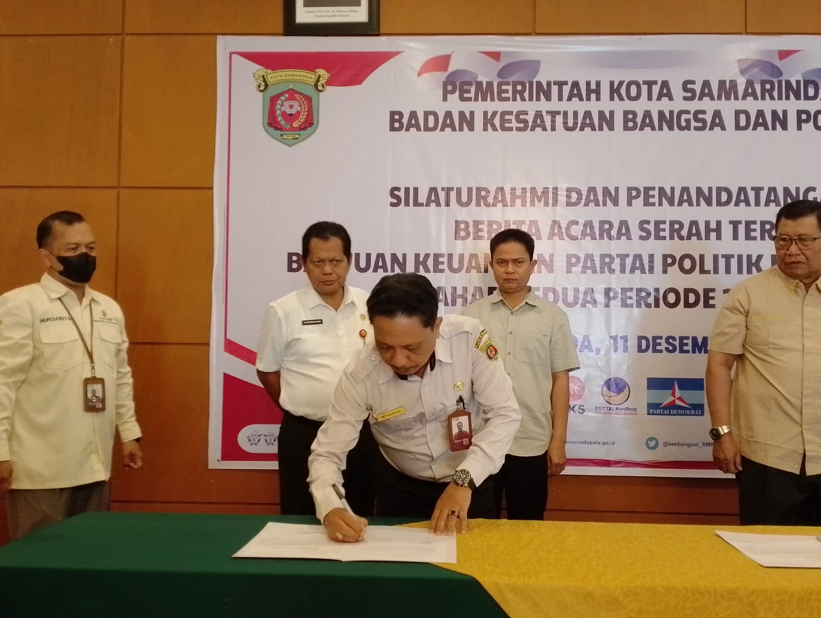 Hadir dalam kegiatan ini Asisten I Pemerintahan dan Kesejahteraan Rakyat Kota Samarinda Ridwan Tasa, Sekretaris Kesbangpol Samarinda Miftahurrizqa dan Ketua DPRD Kota Samarinda Helmi Abdullah, serta perwakilan dari 10 partai politik penerima bantuan.