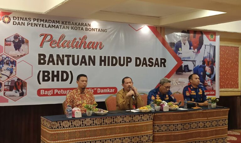 Teks: Asisten Perekonomian dan Pembangunan Kota Bontang Lukman bersama Damkar Kota Bontang dalam Pelatihan BHD. Senin (4/11/2024).