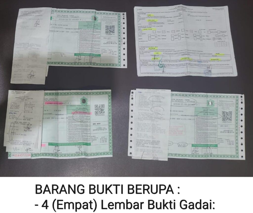 Dari hasil pemeriksaan, AH mengakui telah melakukan penggelapan sejumlah barang berharga yang dititipkan di perusahaan. Barang yang digelapkan berupa tiga buah perhiasan emas dan satu unit handphone iPhone 13 warna hitam.