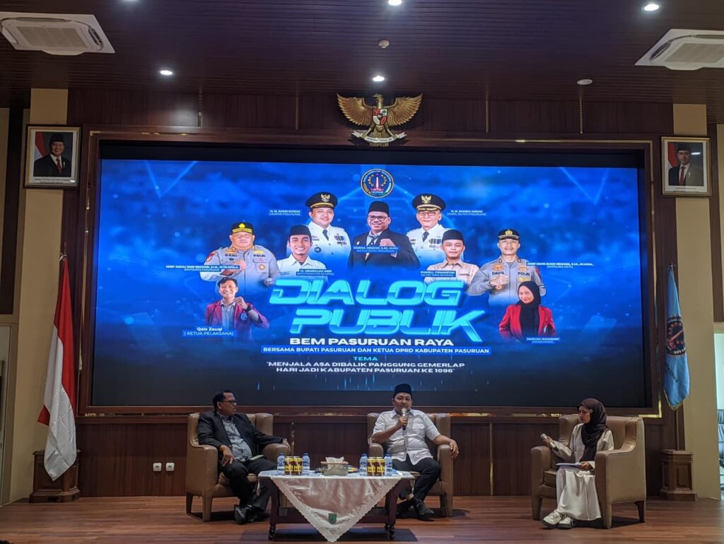 Dialog publik tersebut turut dihadiri oleh Bupati Pasuruan, serta perwakilan mahasiswa dari berbagai kampus di wilayah Pasuruan Raya. Kegiatan ini menjadi momentum penting dalam memperkuat sinergi antara pemerintah daerah dan kalangan akademik, khususnya generasi muda yang menjadi agen perubahan.