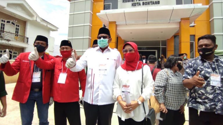 Basri rase bersama Najirah usai daftar di KPU Kota Bontang sebelum ditetapkan sebagai pemenang (Foto_infosatu.co)